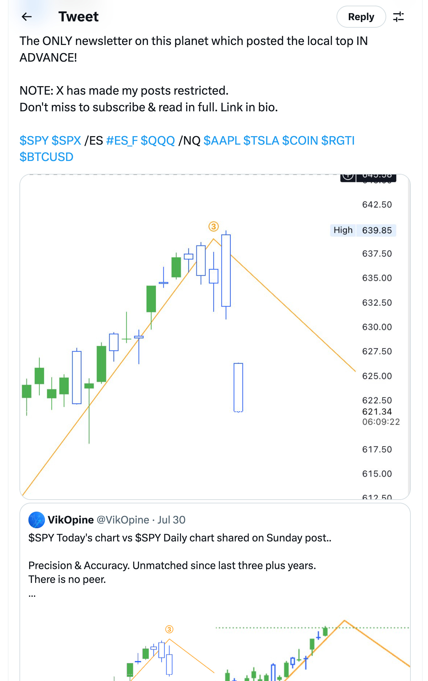 SPY 0.00%↑ chart was shown as approaching a local high and exactly that happened..