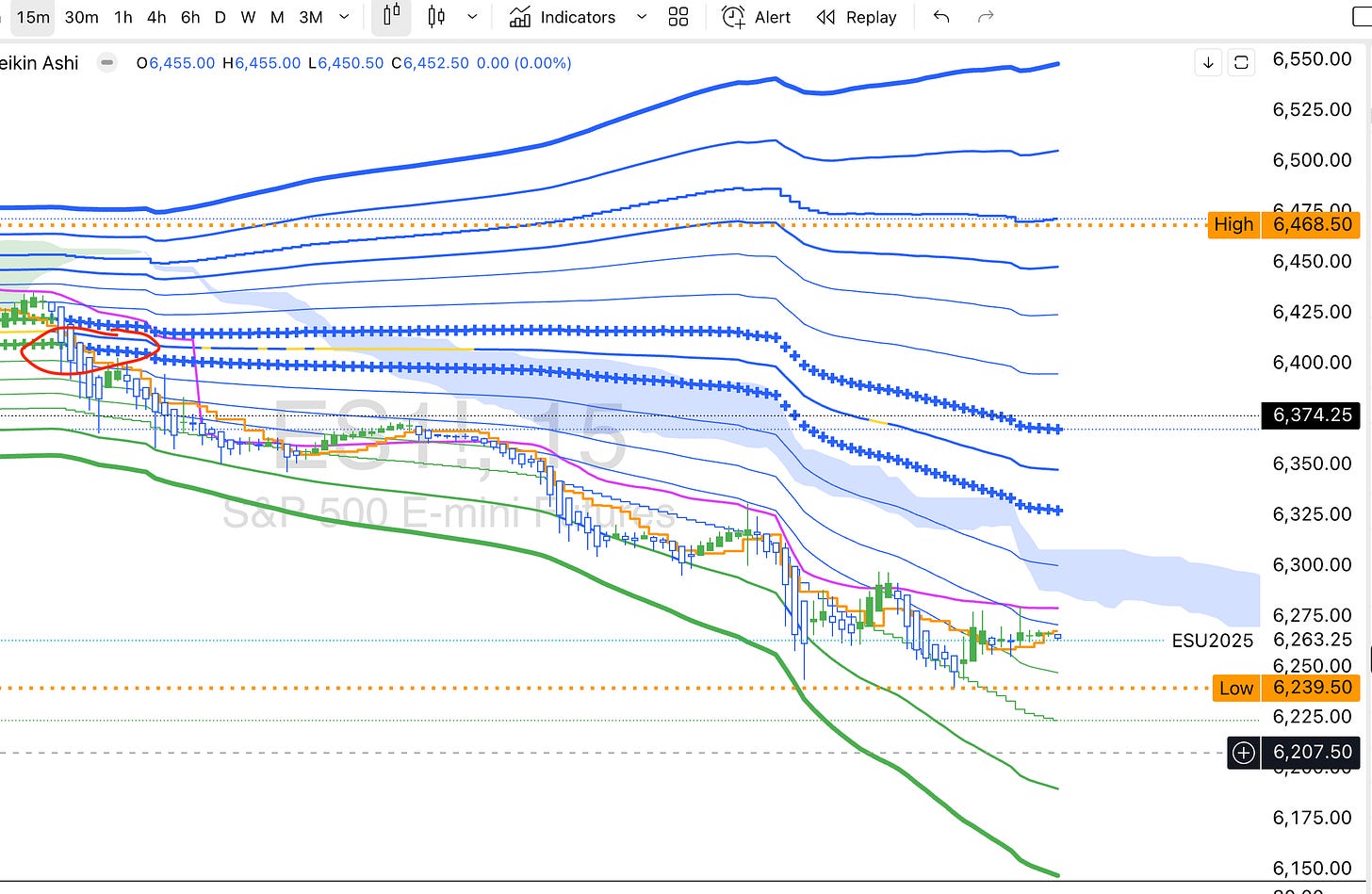 Shown below a 15 min chart on ES1! for which lower fence turned Blue (means Resistance) since Thursday 12:30PM CST
