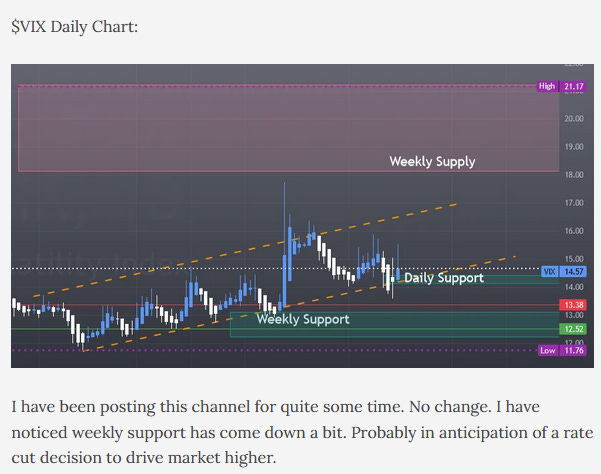 Change to the support level on $VIX was pointing to a higher move in the market. It was not in hindsight. It was posted on Sunday, March 17th. Here is the link.