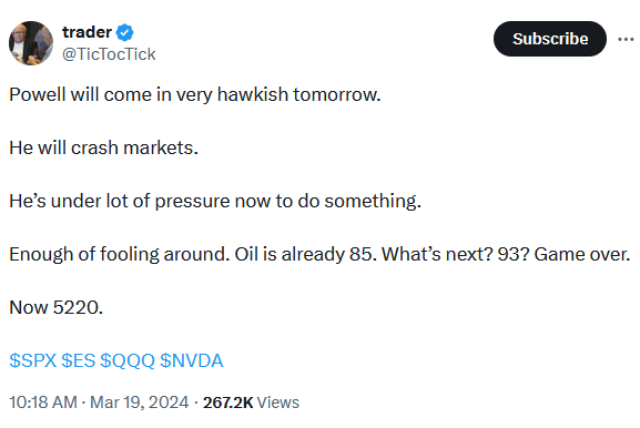 And we all witnessed what market did post FOMC. I posted a tweet as well.